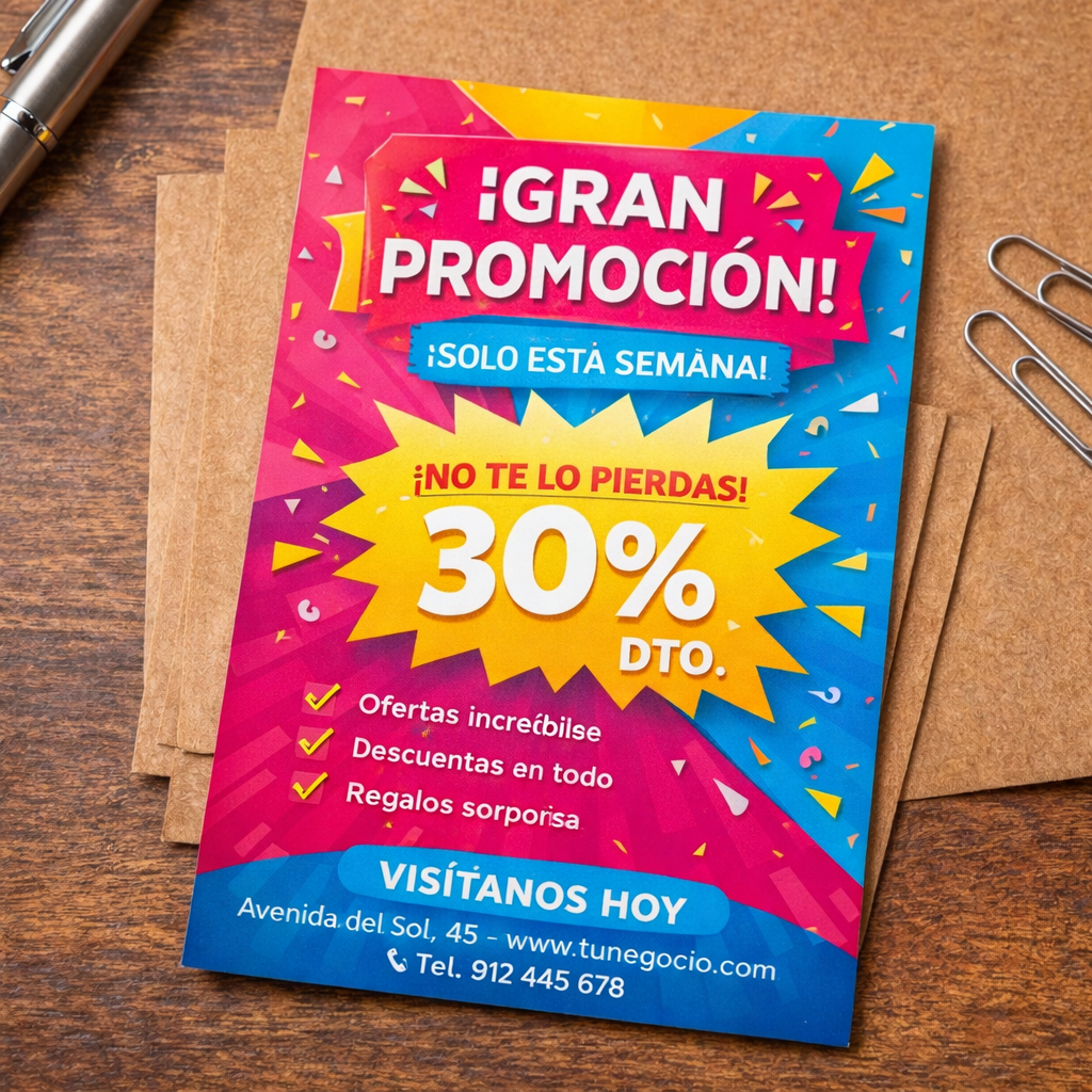 Impresión profesional a todo color de carteles, flyers, tarjetas y material publicitario con calidad fotográfica
